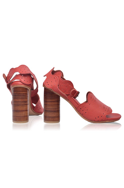 All eyes are on you wearing these super feminine Sakura heels. Constructed from genuine soft leather with cutouts on the upper and ankle strap, they elegantly wrap around the ankle and rest on a high wooden block heel.