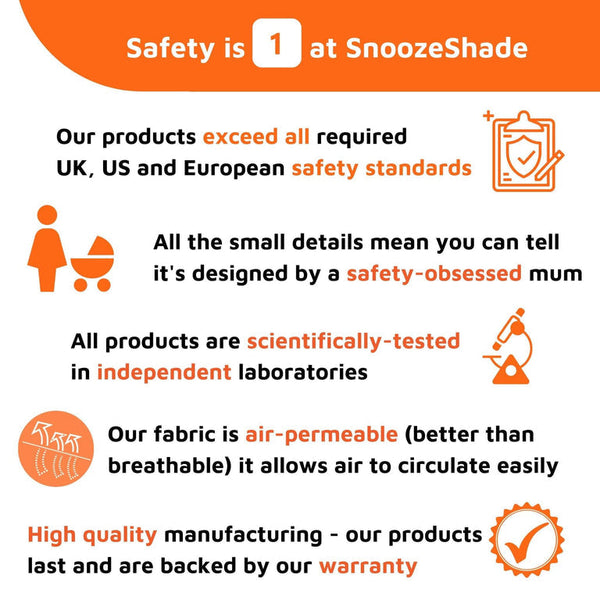 With its cozy blackout design, it creates a comfortingly dark space that encourages naps and enhances your baby’s sleep quality. The SnoozeShade promotes the production of melatonin, the natural sleep hormone, by preventing visual distractions that can disrupt nap time.