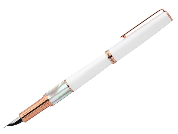 White Brass Fountain Pen (Fine Nib) - With White Mother of Pearl & Rose Gold